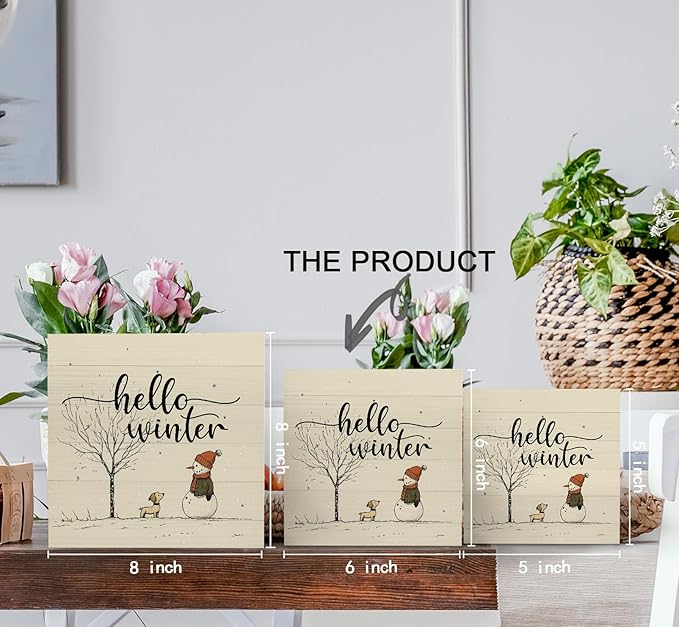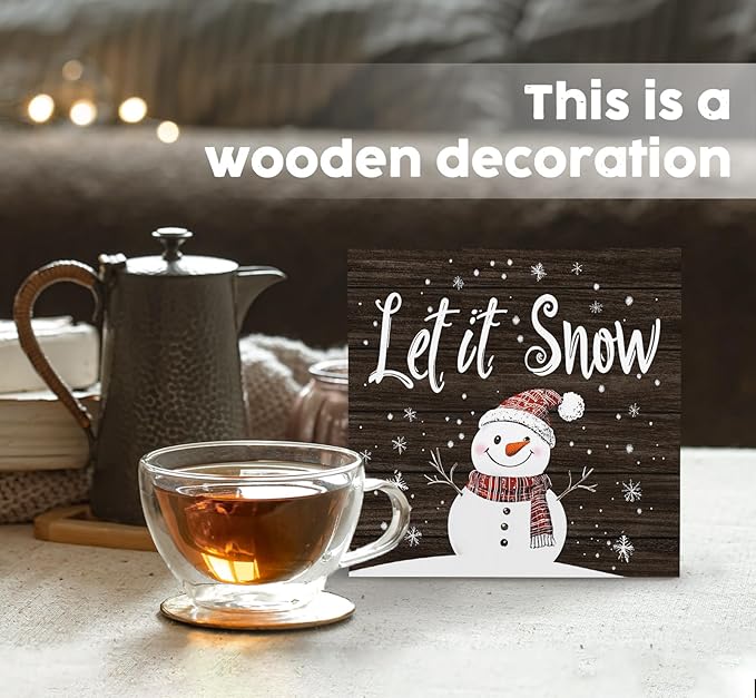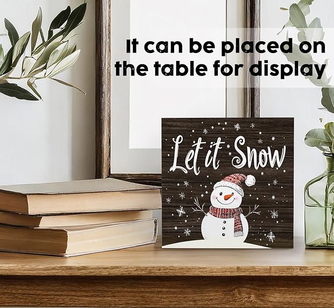 Let It Snow Sign, Christmas Snowman Snowflake Wooden Box Sign, Snowman Christmas Decorations, Winter Wood Signs for Home Office Desk Table Shelf Decor, 6x6 Inch